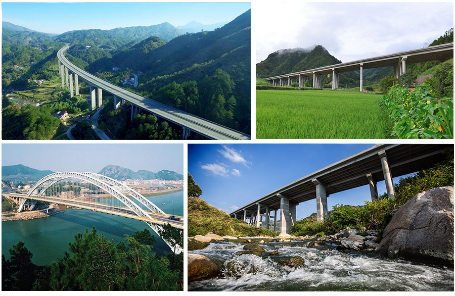 公司先后施工的橋梁工程有馬鞍山長江公路大橋、鷹瑞高速資溪互通大橋、岳潛高速徐沖大橋、泗許跨亳阜互通立交橋、合寧擴建隴西互通立交、濟祁高速渦河特大橋等。