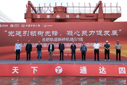 6月5日下午,合肥軌道新橋機場S1線安全生產月啟動暨四里河路站~固鎮路站區間盾構始發儀式活動在1標項目四里河路站施工現場舉行