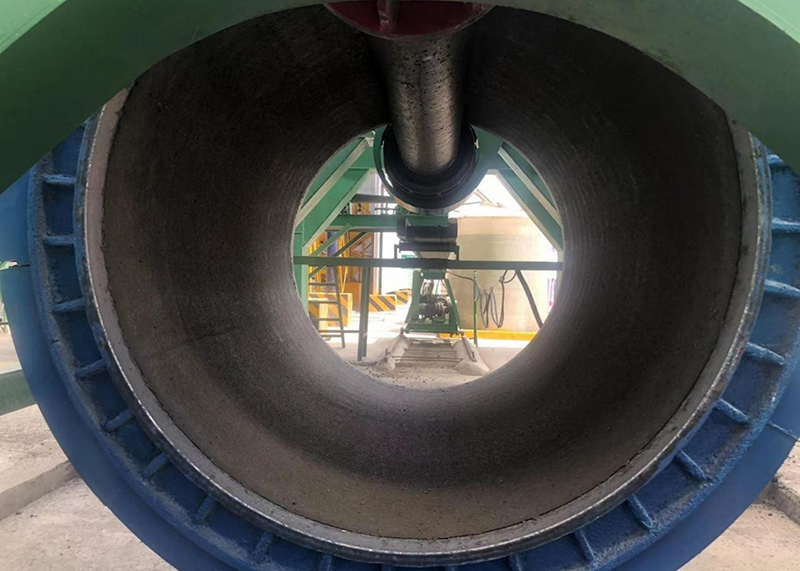 本項目共預制圓管涵4188節,涵身混凝土設計標號C30,采用先預制后安裝的施工方法,所預制的Φ1.5m涵管的管壁厚度為16cm,標準管節長2m,輔助管節長0.5m。施工采用干硬性混凝土,使用懸輥機輥壓離心制管法預制管節。