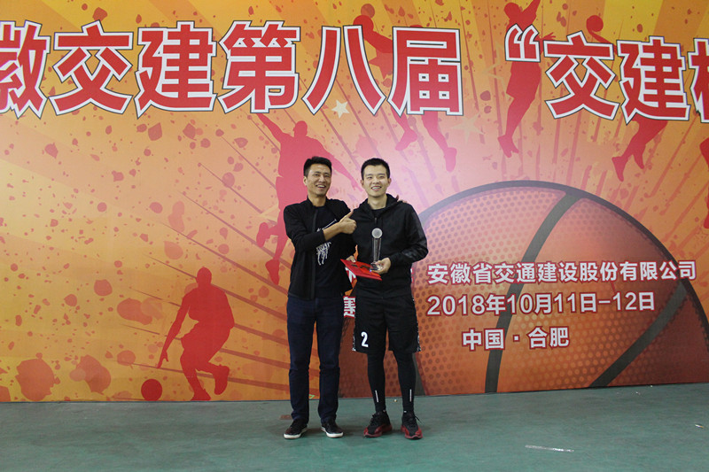 在閉幕式上,安徽交建領導吳學懿、陳明洋、吳小輝、柳欣分別為冠軍、亞軍、季軍和MVP頒發獎杯并表示祝賀。最后,吳總宣布本屆籃球比賽圓滿落幕,期待明年再會!
