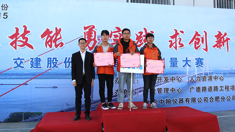 最后,交建股份副總裁吳小輝、技術開發中心總經理宣菲分別為獲得全站儀組、水準儀組團體第一名頒發證書和獎金并表示祝賀。至此,交建股份第三屆施工測量技術培訓暨施工測量大賽圓滿落幕。