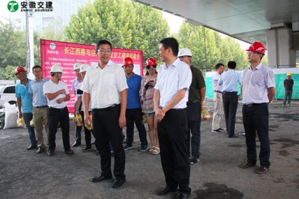 7月18日,安徽省交通控股集團總經(jīng)理錢東升、建管處處長蘇新國、項目辦主任鄒正明等領(lǐng)導一行蒞臨安徽交建滁淮高速定長段路面一標項目部進行檢查指導。