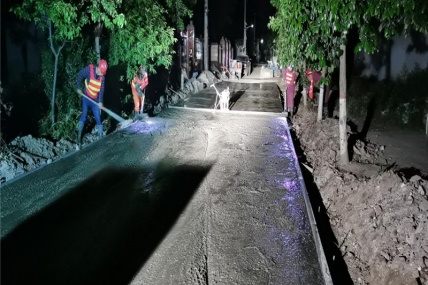凌晨時分,城市的萬千燈火漸弱,界首農村公路項目工地上卻燈火通明,挖掘機、灰土拌合機、混凝土拌合站轟鳴聲此起彼伏,工程運輸車來回穿梭,一片忙碌的景象。