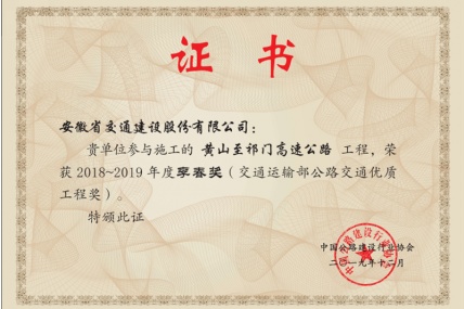 近日,從中國公路建設行業協會傳來喜訊,安徽省交通建設股份有限公司黃山至祁門高速、揚州至績溪高速公路寧國至績溪段項目雙雙榮獲2018-2019年度李春獎。
