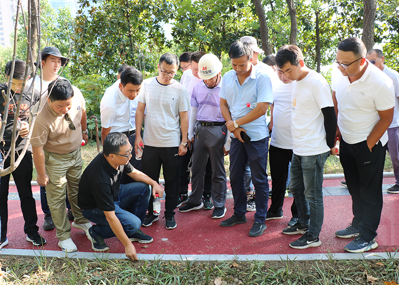 活動期間,安徽交建2019經開慢行項目經理吳金忠分享了施工管理的經驗,針對慢行系統側石、透水混凝土、仿石材道板磚鋪裝、聚合物盲道以及瀝青混凝土面層施工工藝流程的控制,到邊到拐等細節處理方面與在場的專家進行了深入的交流和探討。