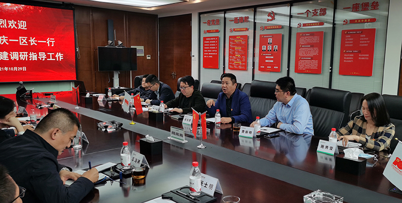 10月29日下午,廬陽區區委副書記區長趙慶一、區委常委區財政局局長沈兵、區政府辦主任季海礁,區住建局局長李政,亳州路街道辦事處主任張士明一行來到安徽省交通建設股份有限公司調研指導工作。安徽交建公司董事長胡先寬、總裁吳小輝等公司高管參加調研座談會。