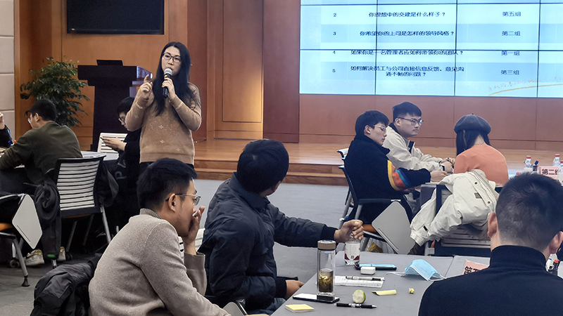 在共創(chuàng)會環(huán)節(jié),大家就“如何快速融入公司”、“你希望的領(lǐng)導(dǎo)風(fēng)格”、“假如你是管理者,如何帶好團(tuán)隊”等問題各抒己見并展開激烈討論。這一環(huán)節(jié)旨在促進(jìn)新員工的成長和融入,讓大家深刻體會團(tuán)隊、責(zé)任、執(zhí)行的意義。