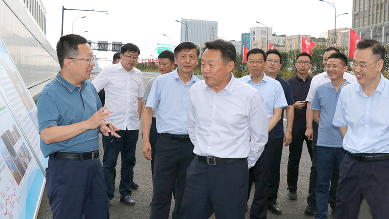 6 月29 日下午,安徽省委常委、合肥市委書記虞愛華一行調研由安徽交建承建的宿松路快速化改造 2 標段項目建設。市城鄉建設局、市建投集團、經開區管委會、市交通局、市重點局、市城投公司、安徽交建等相關單位負責人陪同。